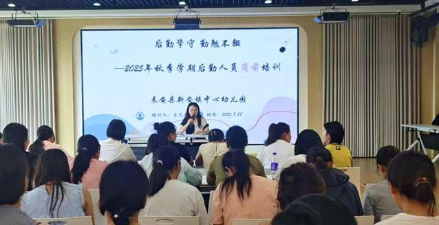 培训还没完,副园长吕天霞和主任柴艳萍轮番上阵,给大家讲了保育和后勤的细节。吕园长教老师们怎么观察孩子们的健康,比如吃饭、睡觉、洗手这些小事,都得细心。她还讲了怎么通过“看、问、摸、查”发现孩子身体不舒服,玩具和水杯怎么消毒,突发情况怎么处理。老师们边听边记,觉得这些技能太实用了。
